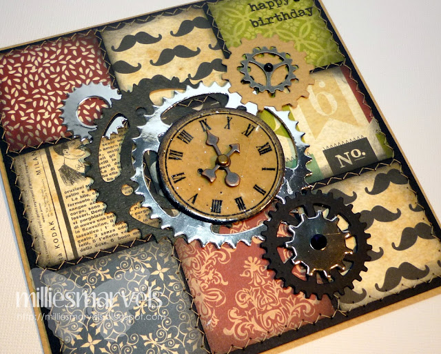 First up is a card made using Distress stains, inks, masking and Tim Holtz stamps. This was such fun to make. It was my first time playing with the Distress stains and I really enjoyed using them! I have been playing a bit more with this technique at home and I have another card to share with you which I made this weekend.
