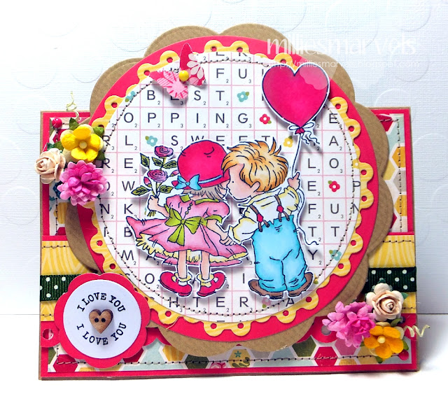 I used My Mind's Eye papers and a Martha Stewart punch for the scalloped borders. The sentiment is from a Penny Black set. I coloured my image with Promarkers and paper pieced her dress.